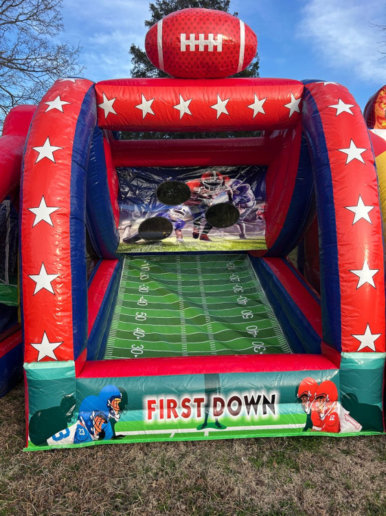 The Touch Down inflatable football game brings competitive, head-to-head fun to parties and events across Murfreesboro and the surrounding areas, giving guests a chance to prove who really has the better arm. Designed as an interactive quarterback challenge, this unit instantly becomes a focal point at backyard parties, school events, tailgates, and community gatherings.