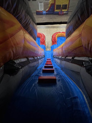 Turn up the heat at your next celebration with the Lava Island double-lane water slide, a 16-foot inflatable attraction that brings non-stop racing action to birthday parties, school carnivals, and backyard events throughout Nashville and surrounding communities. With its bold volcanic theme and head-to-head lane design, this slide transforms any gathering into an unforgettable summer adventure that keeps kids splashing, laughing, and lining up for their next turn.